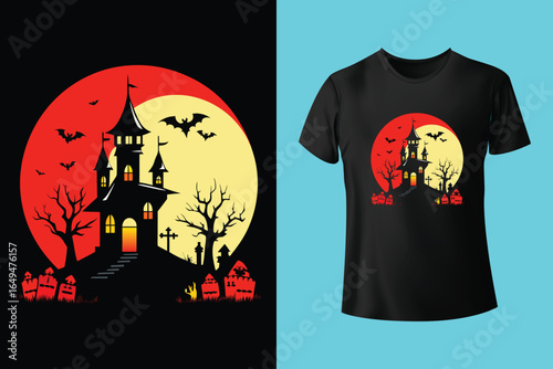 Happy Halloween beautiful witchy and Party scary costume print-ready vector T-shirt. Halloween tee, gift, Vintage House, Pumpkin, vibes only, Skull, trendy Design Template.