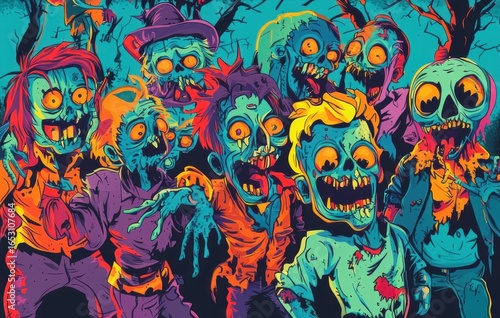 Happy Halloween Concept Zombies Greeting Card with Copy Space. Halloween Postcard with Zombies. Halloween Concept Poster with Copy Space. Halloween Party Invitation Card.