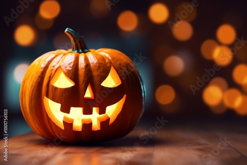 Happy Halloween party Jack O Lantern orange pumpkin scary spooky creepy carving evil smile angry face glowing. Trick treat holiday dark mysterious night eerie horror October nightmare decor festival