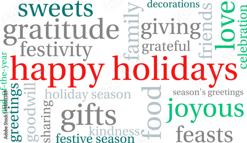 Happy Holidays word cloud on a white background.