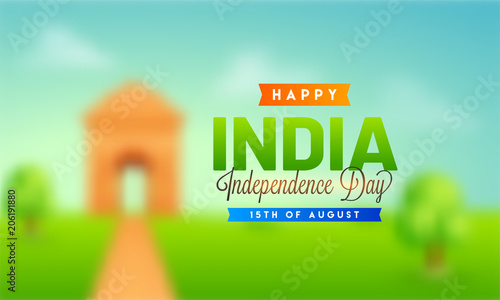 Happy Independence Day celebration poster, banner or flyer design with blur effect. Illustration of India Gate on background.