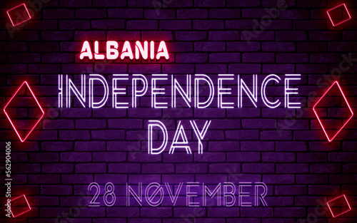Happy Independence Day of Albania, 28 November. World National Days Neon Text Effect on bricks background