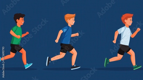 Happy Kids Running Smiling Exercising Active Lifestyle Sport Illustration