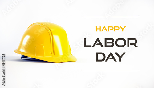 Happy Labor Day background with yellow hard hat isolated on white background, 3d render.