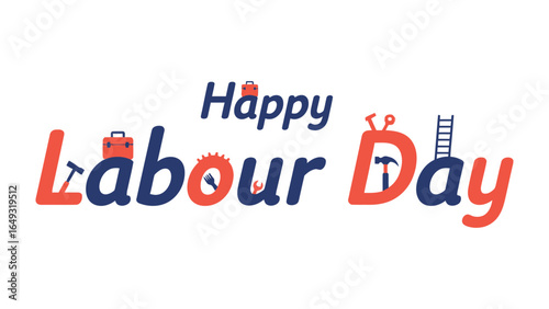 Happy Labour Day: Colorful celebration of Labour Day. A cheerful typography design, highlighting the importance of labor, hard work, and workers' rights.