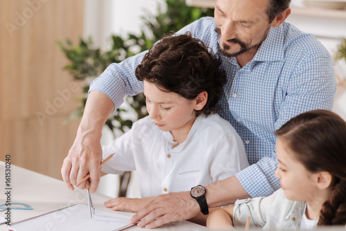 Happy loving father helping his son with math