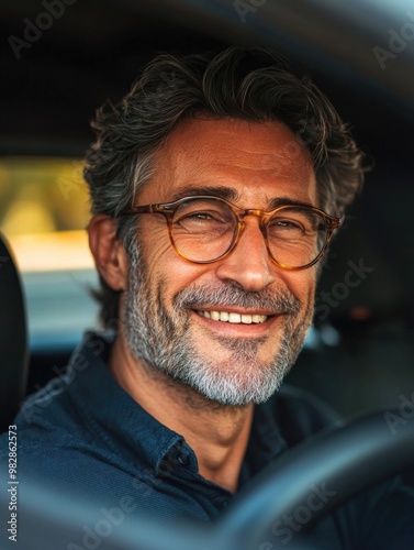 Happy Man in Car
