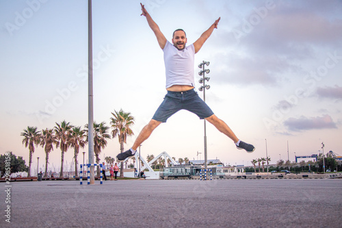 happy man jump at evening