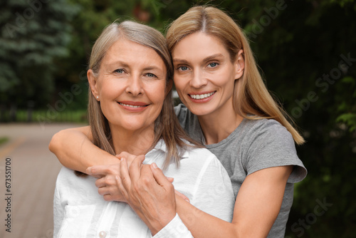 Happy mature mother and her daughter outdoors