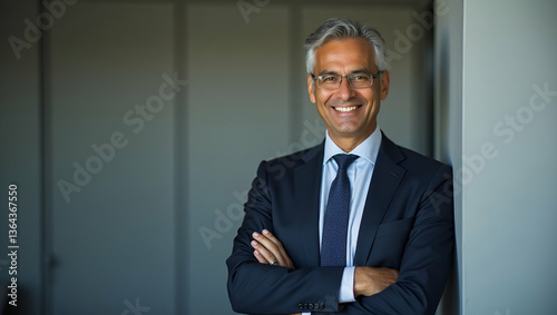 Happy Middle-Aged Indian Businessman CEO Smiling in Office Portrait