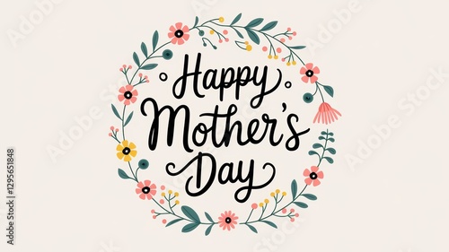 Happy Mothers Day floral design with vibrant colors, artistic lettering, celebration, greeting card idea, love, family, spring season decoration.