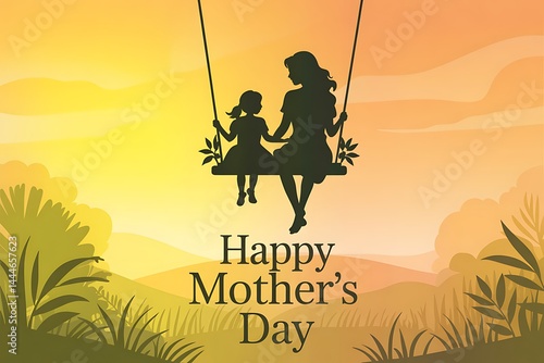 Happy Mothers Day Silhouette of Mother and Daughter on Swing