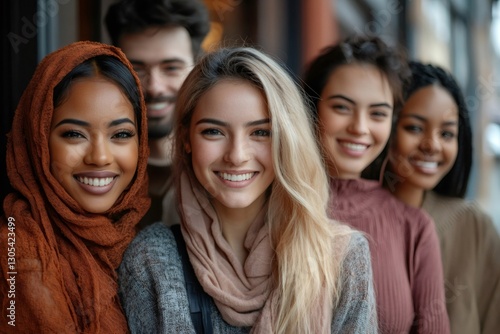 Happy multi ethnic young students smiling together at university