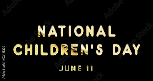 Happy National Children’s Day, June 11. Calendar of June Gold Text Effect, design