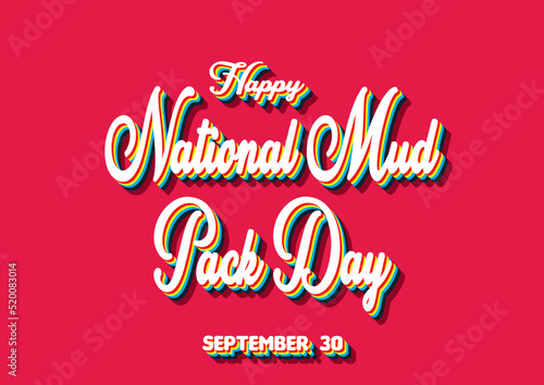 Happy National Mud Pack Day, September 30. Calendar of September Retro Text Effect, Vector design