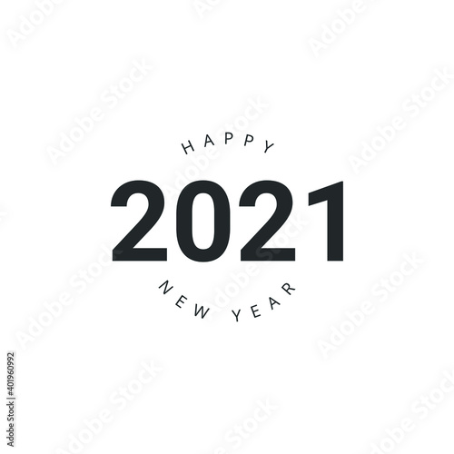Happy New Year 2021 symbol in black color isolated in white background. New year Celebration.