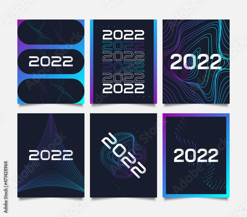 Happy New Year 2022 Poster Design Collection in Colorful Lines Style. 2022 Poster Set. New Year Celebration Design Template for Flyer, Poster, Brochure, Card, Banner or Postcard