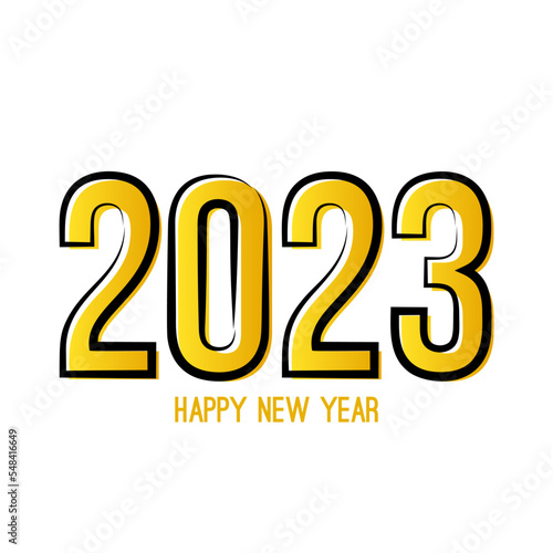 Happy new year 2023 template text design in cartoon style. Vector banner for flyer, brochure, booklet, greeting card.