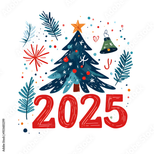 Happy New Year 2025, "2025" hand drawn text isolated on white background