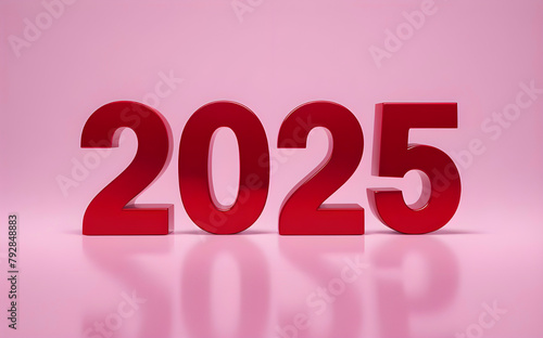 Happy new year 2025 .2025 Typography design. 3d render of 2025.New Year celebration. Red color text design with simple background. Premium letter 2025 design.