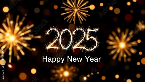 Happy New Year 2025! Sylvester celebration, New Year's Eve party, fireworks, and a backdrop of burning sparklers in the black sky