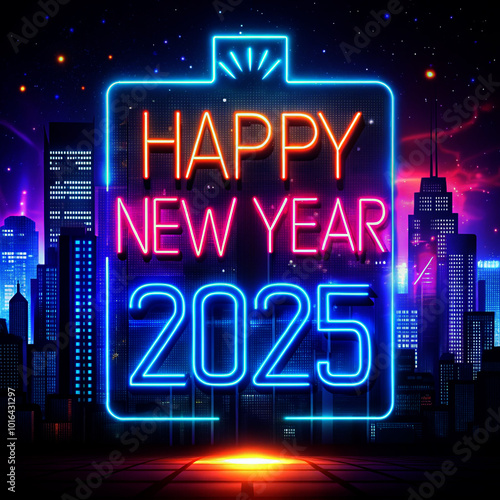 Happy New Year 2025 with neon light