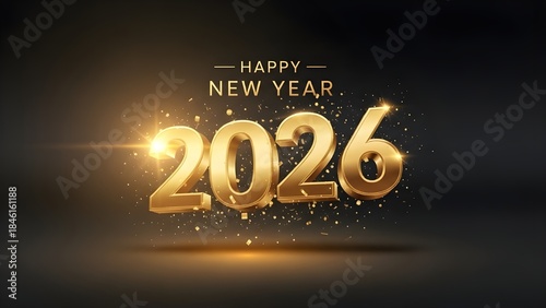 Happy new year 2026 3d golden numbers with confetti and light effects on a dark background