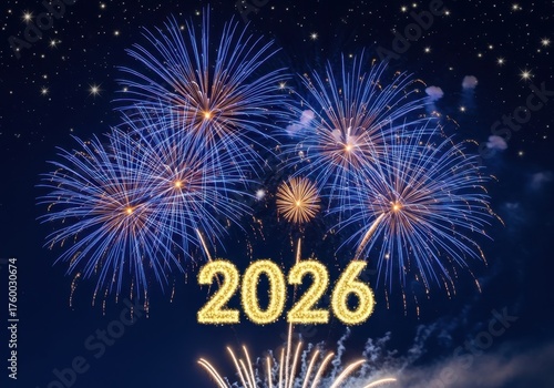Happy new year 2026 celebration fireworks display night sky festive excitement