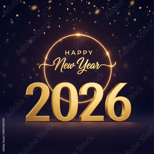 Happy new year 2026 celebration with gold confetti