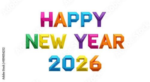 Happy new year 2026 colorful text isolated on transparent background
