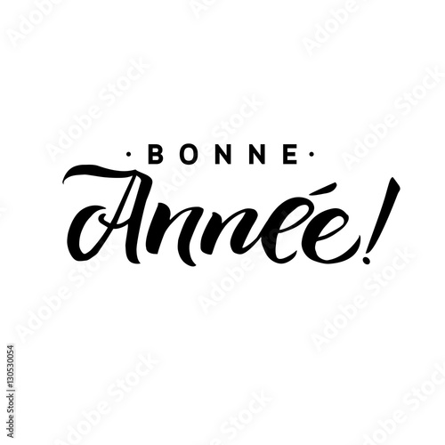 Happy New Year Calligraphy in French. Greeting Card Black Typography on White Background. Vector Illustration Hand Drawn Lettering