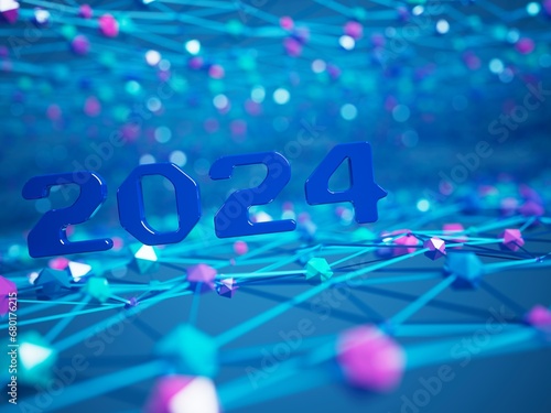 happy new year festival party, graphic abstract design. celebration geometric. happy decoration idea. 2024 number text. christmas art winter wallpaper. background sparkle rendering, 3d illustration