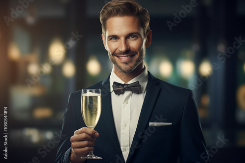 Happy new year. Generative AI picture office workers cheers greeting christmas corporate party