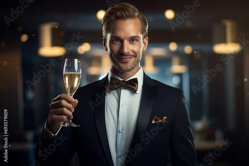 Happy new year. Generative AI picture office workers cheers greeting christmas corporate party