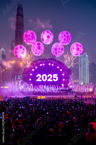 happy, new, year, number " 2025" ballons, firework. AI generative.