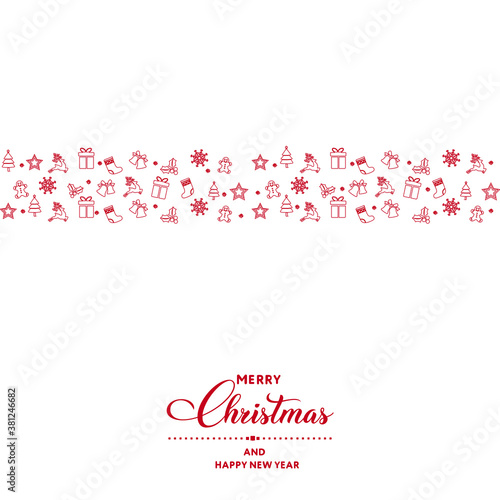 Happy New Year or Christmas card with Xmas decorations. Vector
