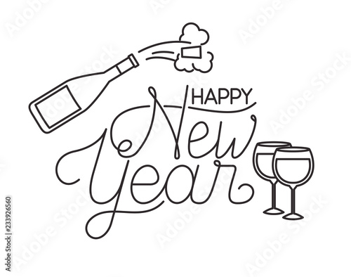 happy new year with elements decorative