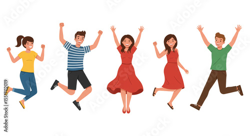 Happy People Jumping Illustration Expressing Joyful Celebration Togetherness