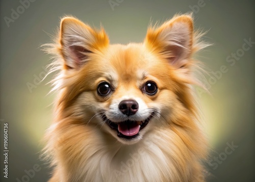 Happy Pomeranian Chihuahua Mix Dog Headshot, Adorable Puppy, Small Breed Dog Portrait