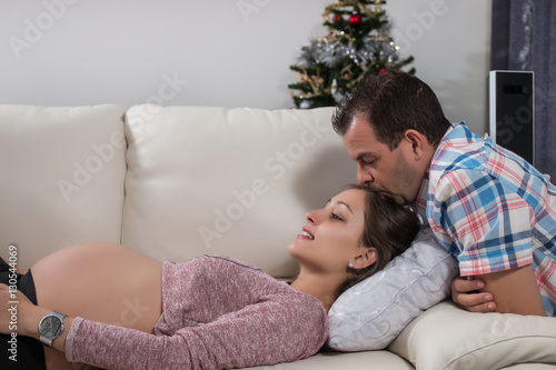 happy pregnant girl and husband