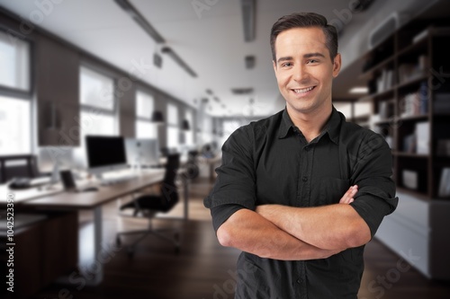 Happy professional business man posing in office