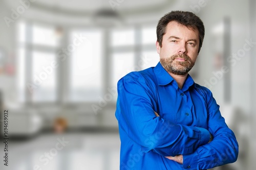 Happy professional business man standing in office