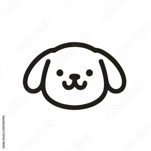 Happy puppy face line art, black and white, cheerful pet illustration against a white background