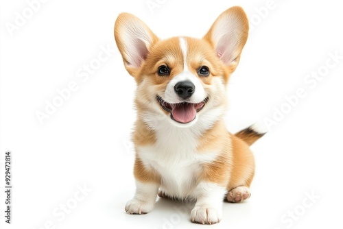 happy Puppy Welsh Corgi 14 Weeks old, dog winking, panting and sitting isolated , ai