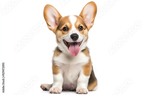happy Puppy Welsh Corgi 14 Weeks old, dog winking, panting and sitting isolated , ai