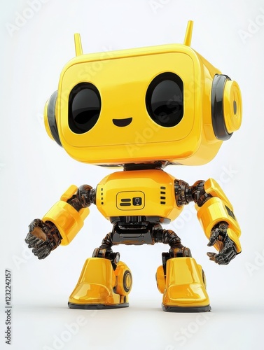 Happy robot. 3d ai character, chat bot mascot isolated on white background, GPT chatbot icon. Artificial intelligence, trendy technology, support service, funny automaton computer