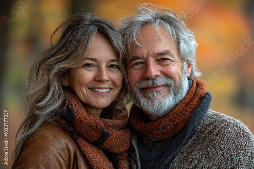 Happy senior couple hugging and smiling