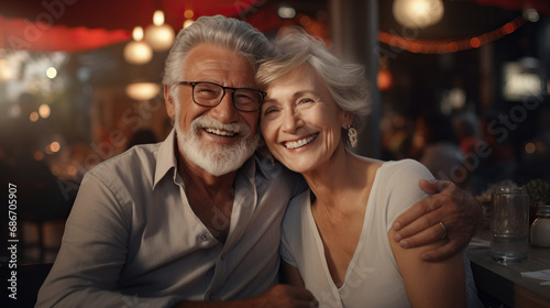 Happy senior couple in love having dinner. Concept of Romantic Companionship, Enduring Love, and Cherished Moments in Later Years.