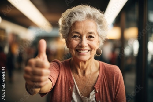 happy senior female showing her trump up healthy happy on her age,AI generated