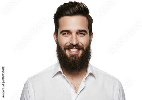 Happy Smiling Man Portrait Attractive Beard Business Casual Male Face Hair Model White Shirt Image
